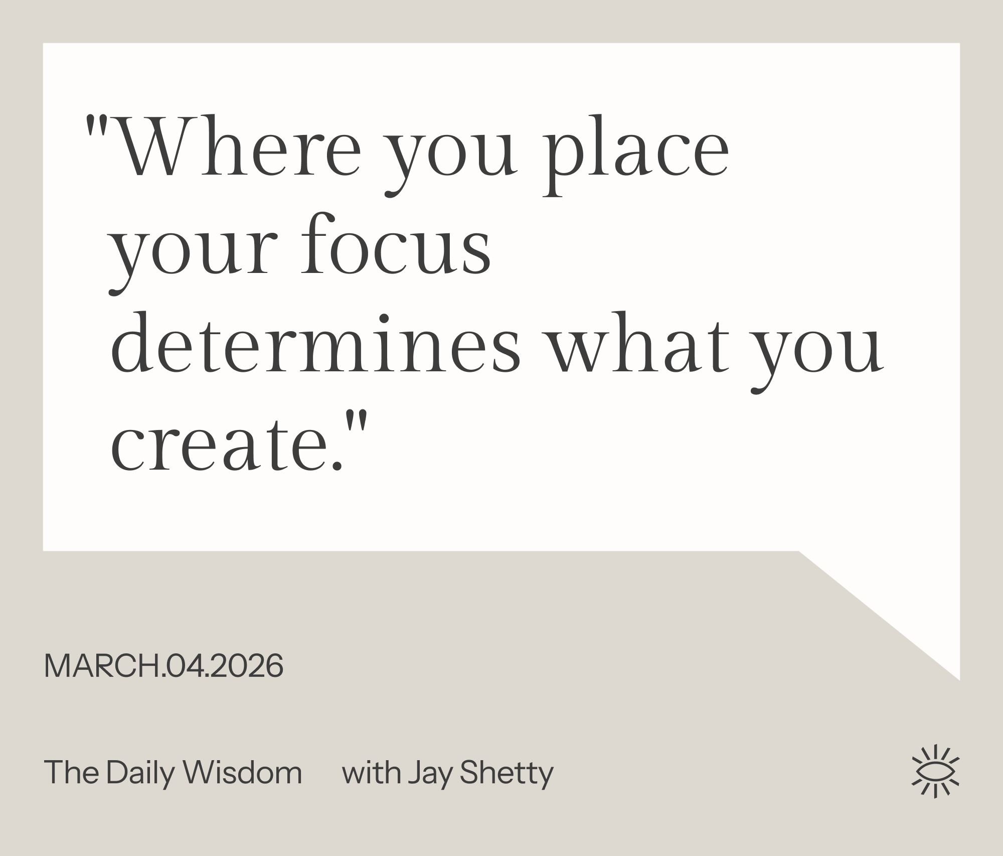 Where you place your focus determines what you create. Read, listen, reflect, or take small steps toward your passions. Don’t let your attention drift into autopilot. Protect it at all costs.