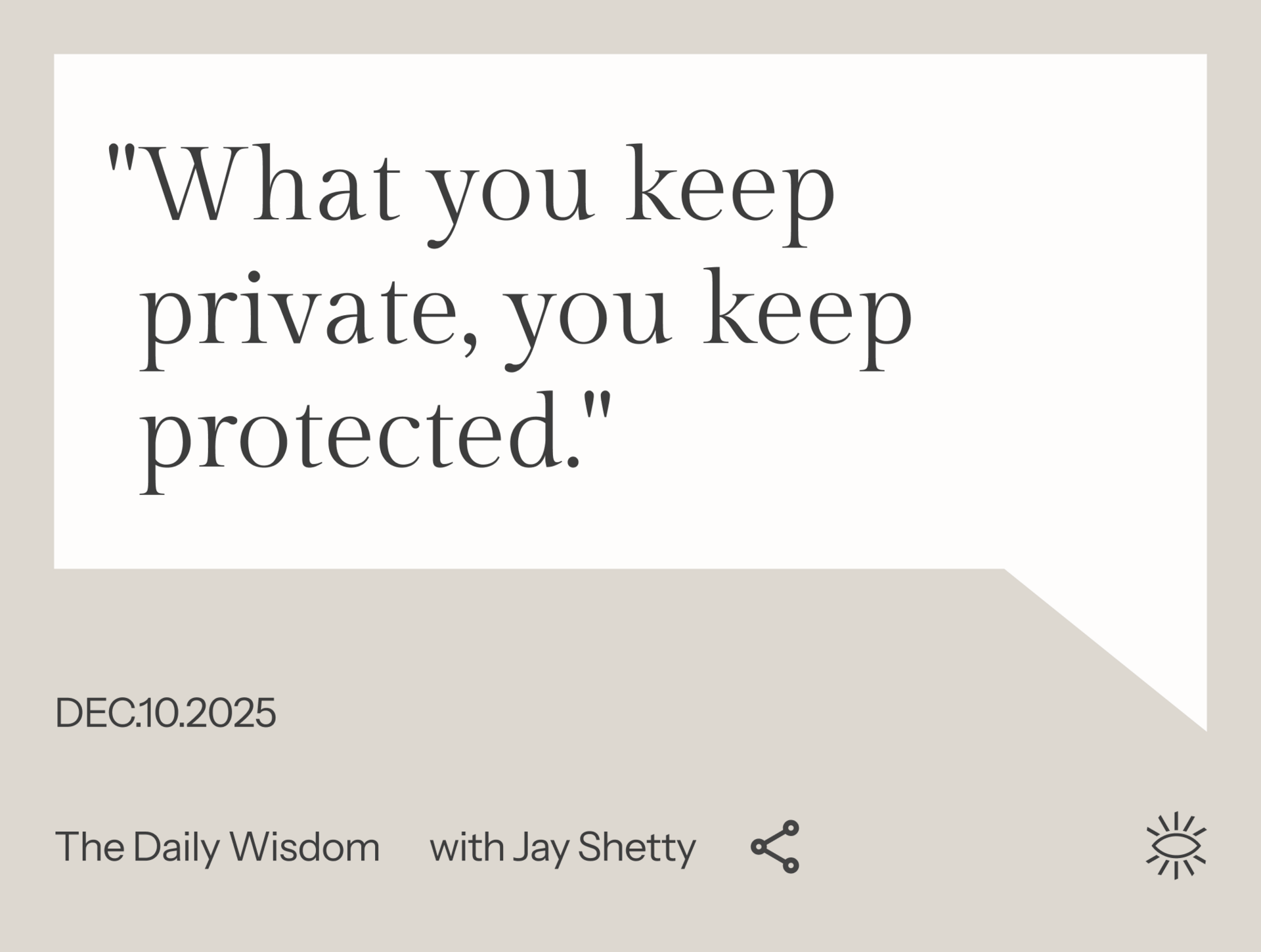 In Buddhism, retreat is essential for awakening. In Hinduism, tapasya (or austerity) requires privacy. When you keep parts of yourself private, you protect them.